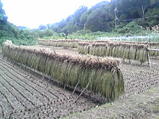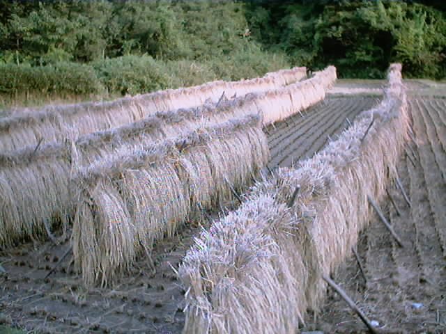 無事に稲刈りも終わり、昔ながらの竿がけ風景
