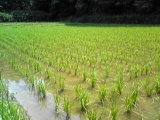 近くの湧き水を引き入れ、稲作をおこなっています。
