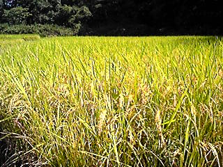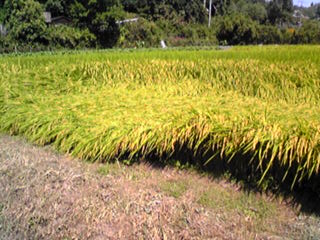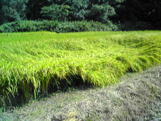 実り多く、稲穂の重さで倒れてしまった
